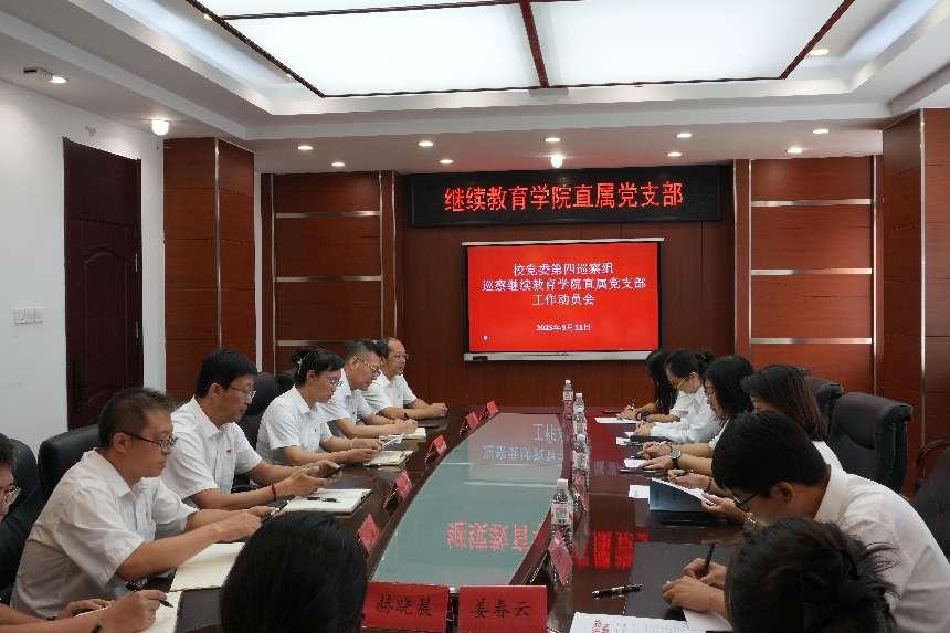 根据校党委关于巡察工作的统一部署,2025年9月11日,校党委第四巡察组巡察继续教育学院直属党支部工作动员会召开。会上,第四巡察组组长王彩虹作了动员讲话,对做好巡察工作提出要求。继续教育学院直属党支部书记张猛作了表态发言,会议由张猛主持。
