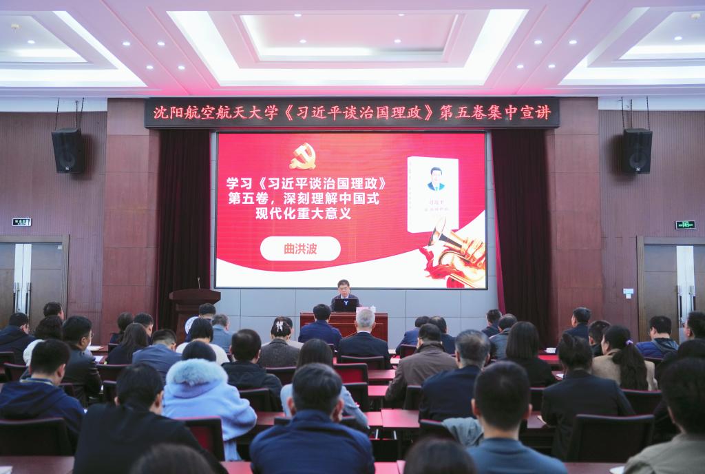 11月12日,沈阳航空航天大学召开《习近平谈治国理政》第五卷集中宣讲,深学细悟习近平新时代中国特色社会主义思想的最新成果,深刻把握党中央对高等教育工作的重要要求。校党委书记范振伟,党委副书记、校长李润东及在校校领导、党委常委及机关工作人员参加学习。
