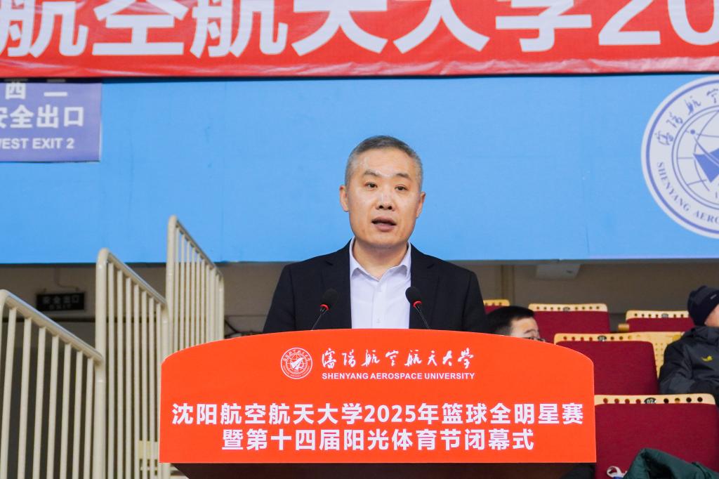 闭幕式上,曲迎东向为本届阳光体育节辛勤付出的师生表示感谢,并向取得优异成绩的集体和个人表示祝贺。他指出,本届体育节以“鸣奏青春旋律,抒写运动乐章”为主题,吸引了全校一万四千余名师生积极参与,充分展现了沈航人昂扬向上的精神风貌。特别是在本年度,学校体育代表队在全国及辽宁省各级各类比赛中屡创佳绩,实现了历史性突破,其中足球队勇夺全省冠军,创造了学校在“三大球”项目上的首个冠军纪录。他强调,当前学校正处于建设高水平研究应用型大学的关键时期,希望全体师生能将体育运动中激发出的蓬勃朝气、昂扬锐气和团队精神,转化为推动学校事业发展的强大动力,让运动成为习惯,让健康相伴成长。