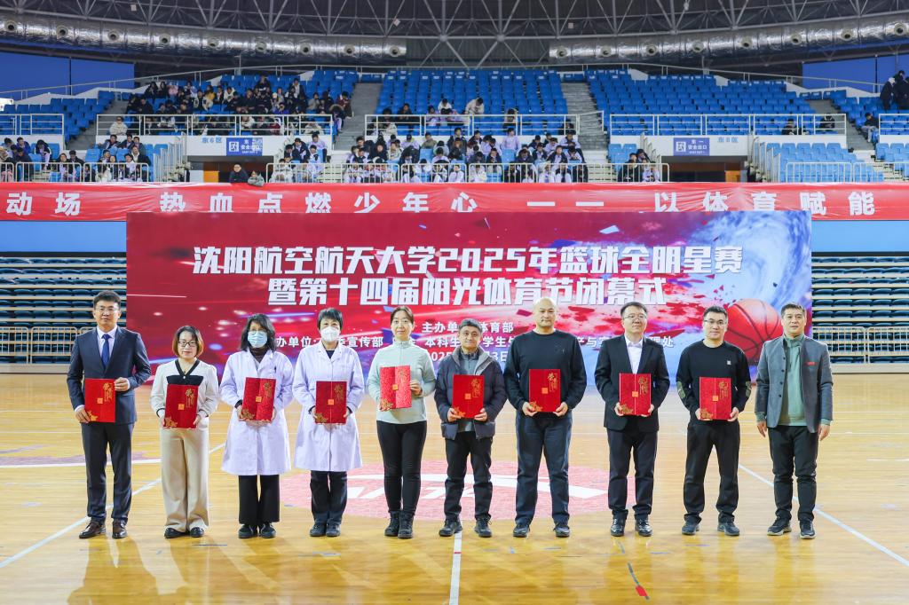 作为本届阳光体育节收官亮点,师生篮球全明星赛激情上演。比赛打破传统界限,由教师与学生携手组队、同场竞技。赛场之上,师生默契配合、奋力拼搏,用汗水与笑容生动诠释了体育育人内涵,加深了师生情谊。中场休息时,设计艺术学院学生带来的健美操表演活力四射,为比赛增添了青春动感的艺术气息。