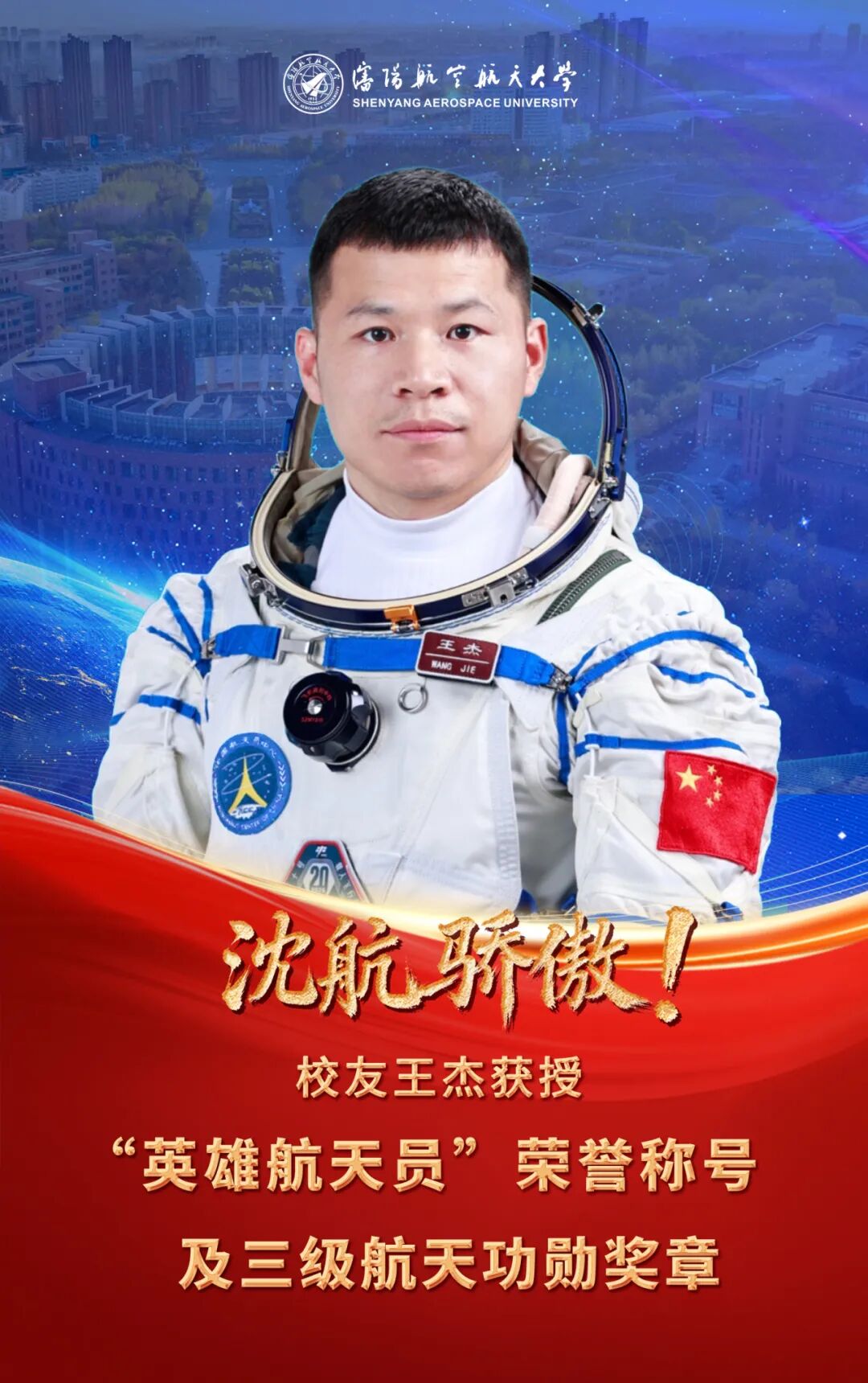 让我们向王杰校友致以最热烈的祝贺与最崇高的敬意!全校师生将以他为榜样,弘扬航天精神,脚踏实地,勤学奋进,共同为实现航天强国梦想贡献力量。也期盼王杰校友未来再创佳绩,更期待越来越多的沈航学子志存高远,投身星辰大海的伟大事业,续写沈航人的荣耀篇章!