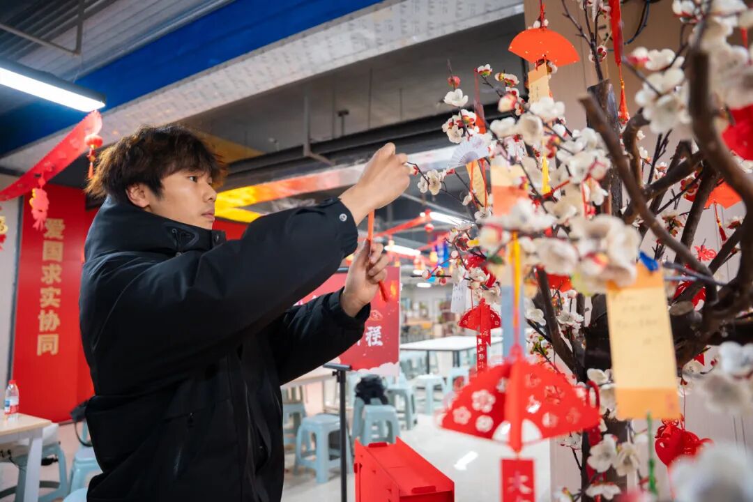 祈愿树下,学生们认真书写并悬挂心愿寄语,字里行间满是对新学期的美好期许,更有对校园佳节相聚的珍惜。点点心愿凝聚成沈航青年向上向善的蓬勃力量。