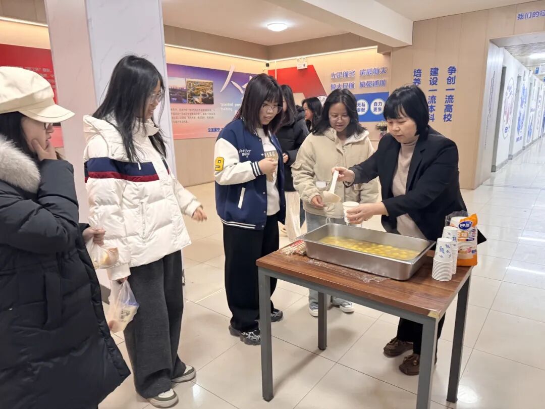 元宵清晨,校园暖意先行。各宿舍楼大厅里,楼妈们早早备好热气腾腾的元宵,为迎着晨光奔赴课堂的学子送上节日的第一份美好。一口甜糯入喉,暖意直抵心间,一碗元宵,盛满了学校对每一位学子的贴心关怀。