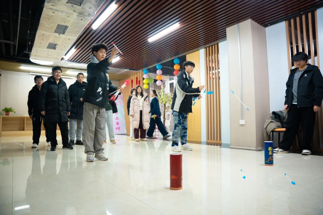 投壶、木射、猜灯谜、扎花灯等传统游艺项目同步开展,师生踊跃互动、乐在其中,在沉浸式体验中感受传统礼仪与文化之美,在趣味互动中增进情谊、增添幸福。