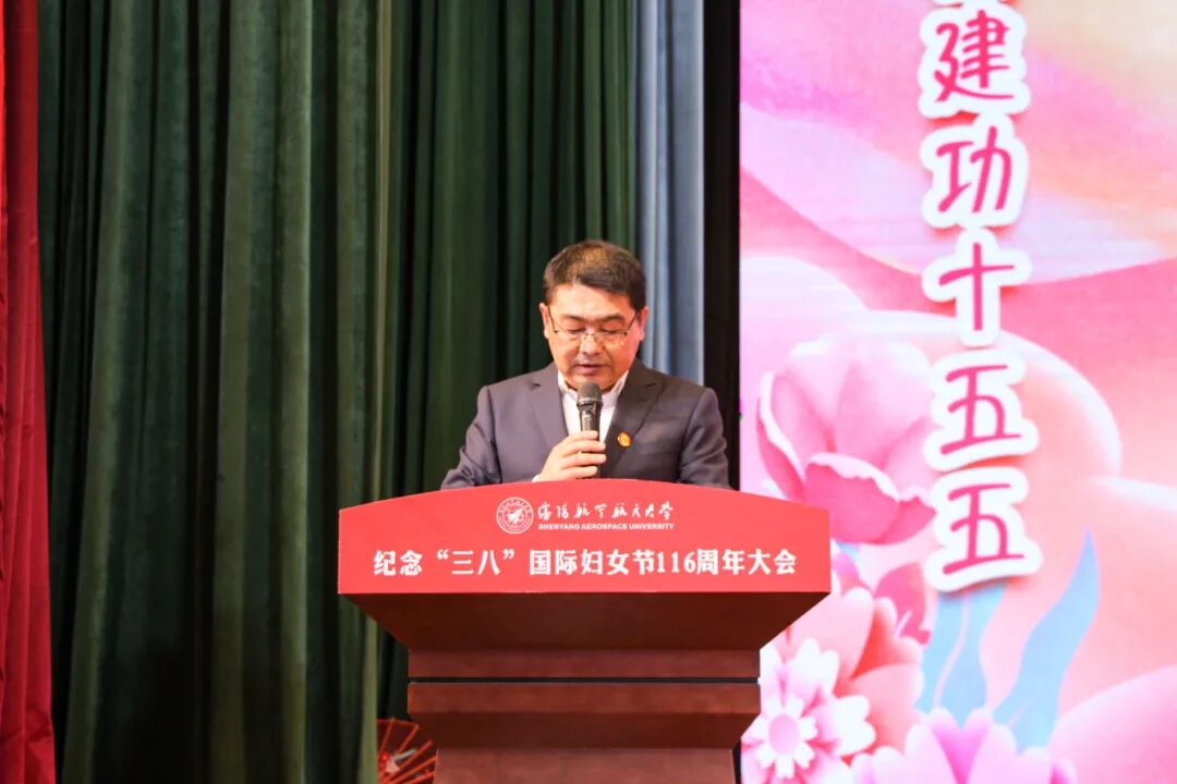 为庆祝第116个“三八”国际妇女节,凝聚与彰显校内磅礴的“她力量”,沈阳航空航天大学于3月6日隆重举办“巾帼建功十五五 团结实干开新局”展演活动。校党委常委、副校长、校妇联主席周驰,校党委常委、组织部部长、校工会主席徐宝贵出席,与师生一同礼赞巾帼风采。