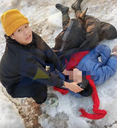 上岸后,他不顾自身麻木,立即跪地进行心肺复苏,近一小时的生死坚守,终于从死神手中抢回了老人的生命,而他的衣裤早已冻成冰壳。