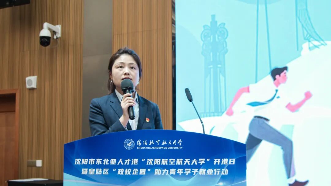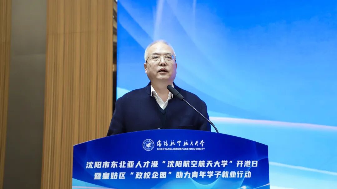 3月18日,沈阳市东北亚人才港“沈阳航空航天大学”开港日暨皇姑区“政校企园”助力青年学子就业行动在学校举行。活动由沈阳市人社局、皇姑区政府与沈阳航空航天大学联合主办,市就业和人才服务中心、区人社局及电子信息工程学院承办,沈阳低空数智产业园支持。学校党委常委、副校长周驰,沈阳市就业和人才服务中心主任王铁军,皇姑区人民政府副区长韩玉芹,皇姑区人力资源和社会保障局局长田兴出席活动。市区人社部门、园区及企业代表、学校师生等700余人参加,共话人才培育。