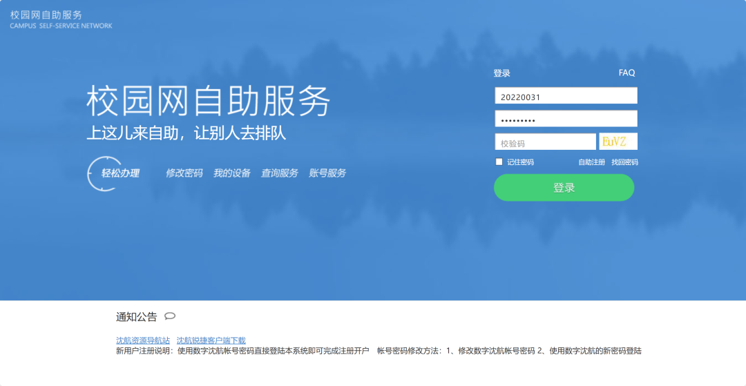 同学们可以登录校园网自助平台:https://nicserver.sau.edu.cn,查询流量、变更套餐、在线缴费和报修等功能全部搞定!